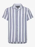 Denna kortärmade skjorta kombinerar avslappnad stil med skönt bärkomfort – ett perfekt val för varma sommardagar. Den genomgående knappslået ger en tidlös känsla, medan det diskreta randmönstret skapar en modern detalj. Det lätta, andningsbara materialet ger en luftig känsla och gör skjortan idealisk för sommarens fritidsoutfits. Den raka passformen ger rörelsefrihet och en avslappnad silhuett. Bär den öppen över en T-shirt eller knäppt för en mer klassisk look – ett mångsidigt sommarbasplagg du inte vill vara utan.