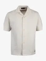 Mjukt, stretchigt jerseymaterial med textur, resort-krage och knäppning fram – en stilren skjorta med avslappnad elegans.